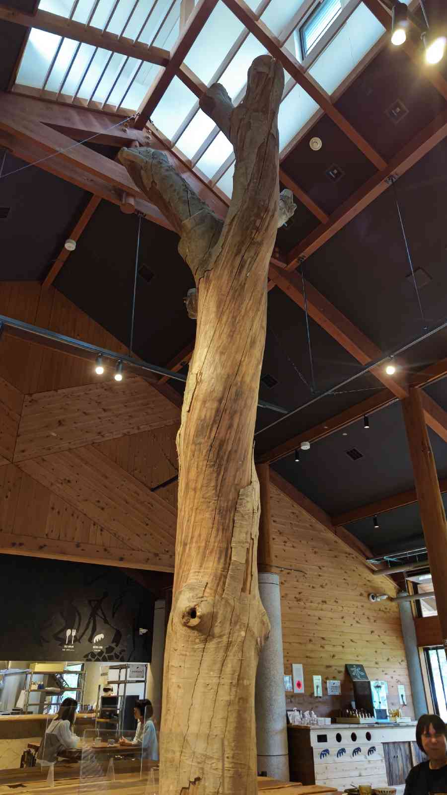 食堂&カフェは、天井の高いオープンキッチンで開放感がある 冷房が効いていて助かった 鯖の定食を食べたけど旨かった