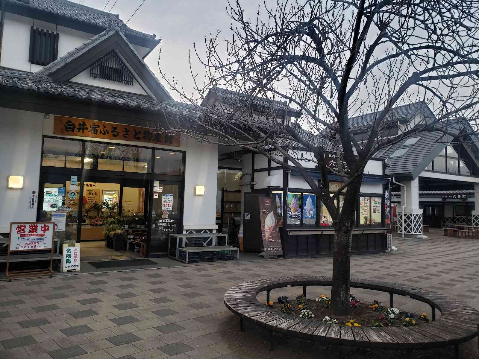 歴史的な外観となっており, 直売所の商品も多い. 奥には水車と足湯, 小川等の日本式の庭があり, 楽しめる.