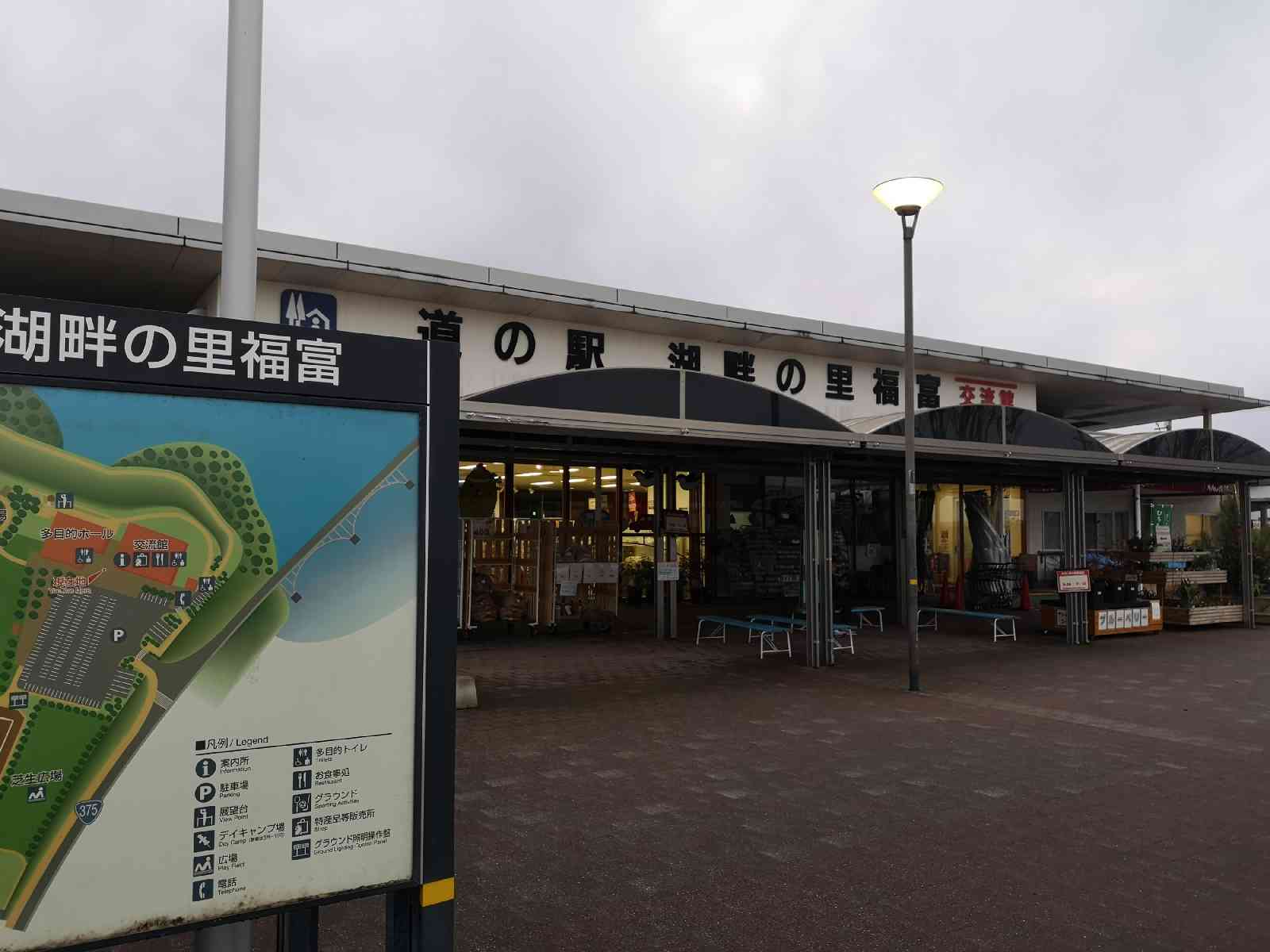 広大な福富ダムに囲まれた駅 敷地はかなり広く、遊具施設やグラウンド、多目的ホールなどもある